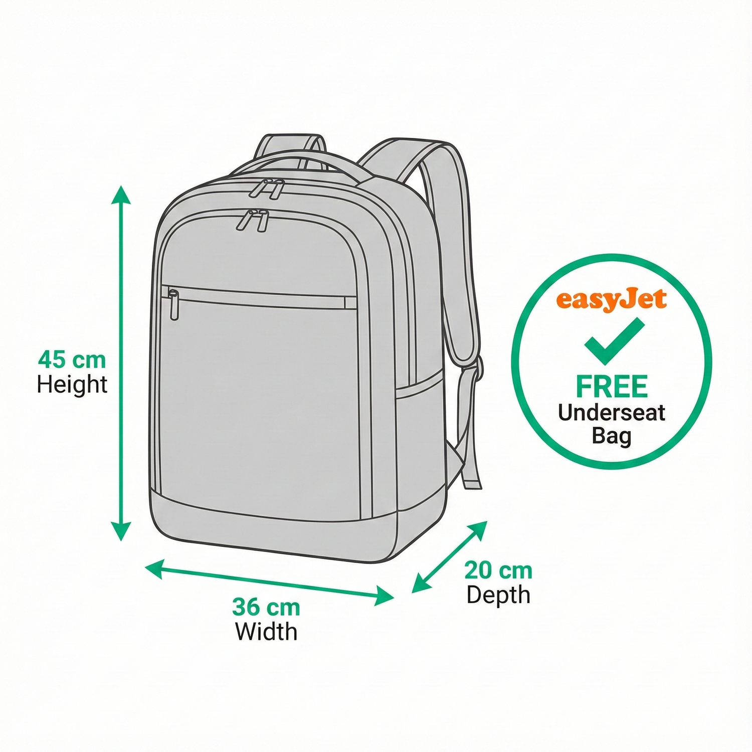 Small cabin bag 45x36x20 easyjet
