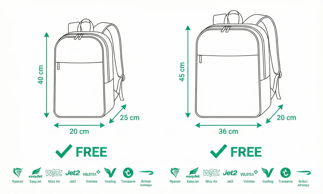 No extra fees every model fits strict low-cost airline dimensions.