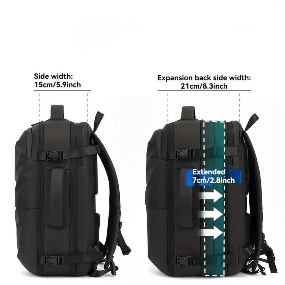 Lightweight expandable backpack shaped for 45×36×20 cabin rules